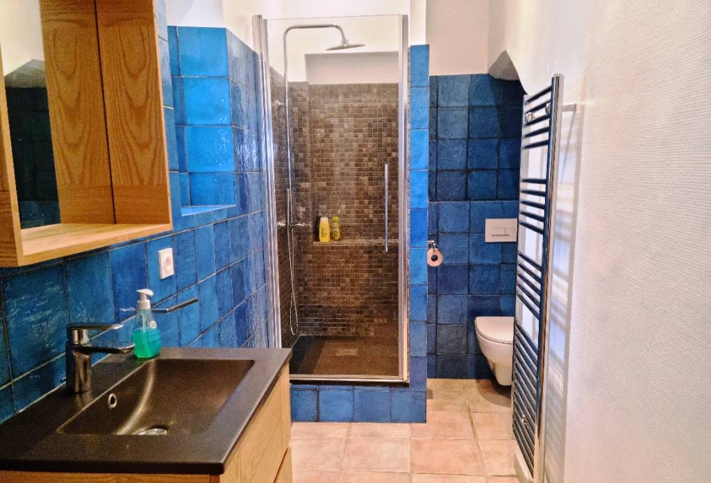 La villa, qui date de la première moitié du XXème siècle, n'a rien perdu de son charme. L'appartement, qui se loge au rez-de-chaussée, a profité d'une rénovation complète avec un intérieur qui est assez contemporain. Le bien se compose d'un salon avec espace séjour, d'un coin nuit avec des rangements, d'une salle d'eau avec WC et d'une cuisine ouverte, entièrement équipée. En tout, la superficie habitable s'établit à 43 m², dont une pièce à vivre qui couvre une surface de 20 m². Côté extérieur, il y a une terrasse d'environ 30 m² qui livre une vue mer imprenable, avec une exposition plein Sud, une orientation qui apporte un maximum de luminosité.