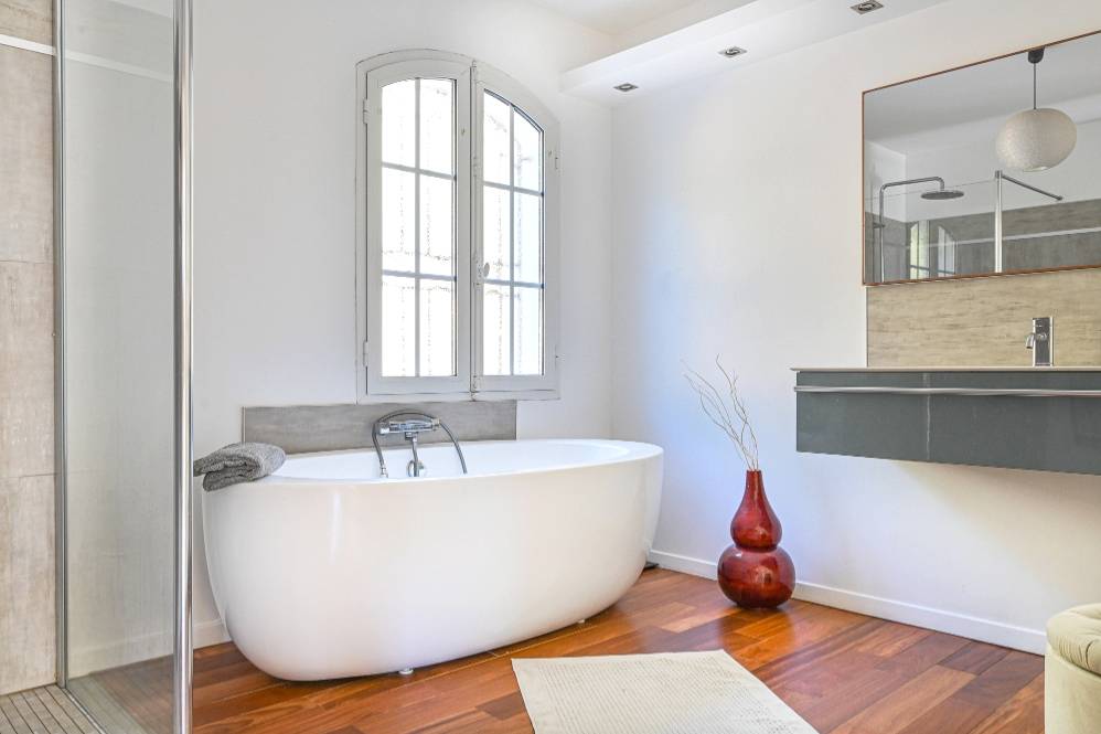 En extérieur, ce domaine accueille une parcelle de terrain de 3600 m², une piscine, un jardin arboré et plusieurs dépendances. Nous avons fait le choix de ne pas tout dévoiler et de vous épater lors de la visite: une jolie vue mer, des plantations exotiques, des espaces de détente, etc.