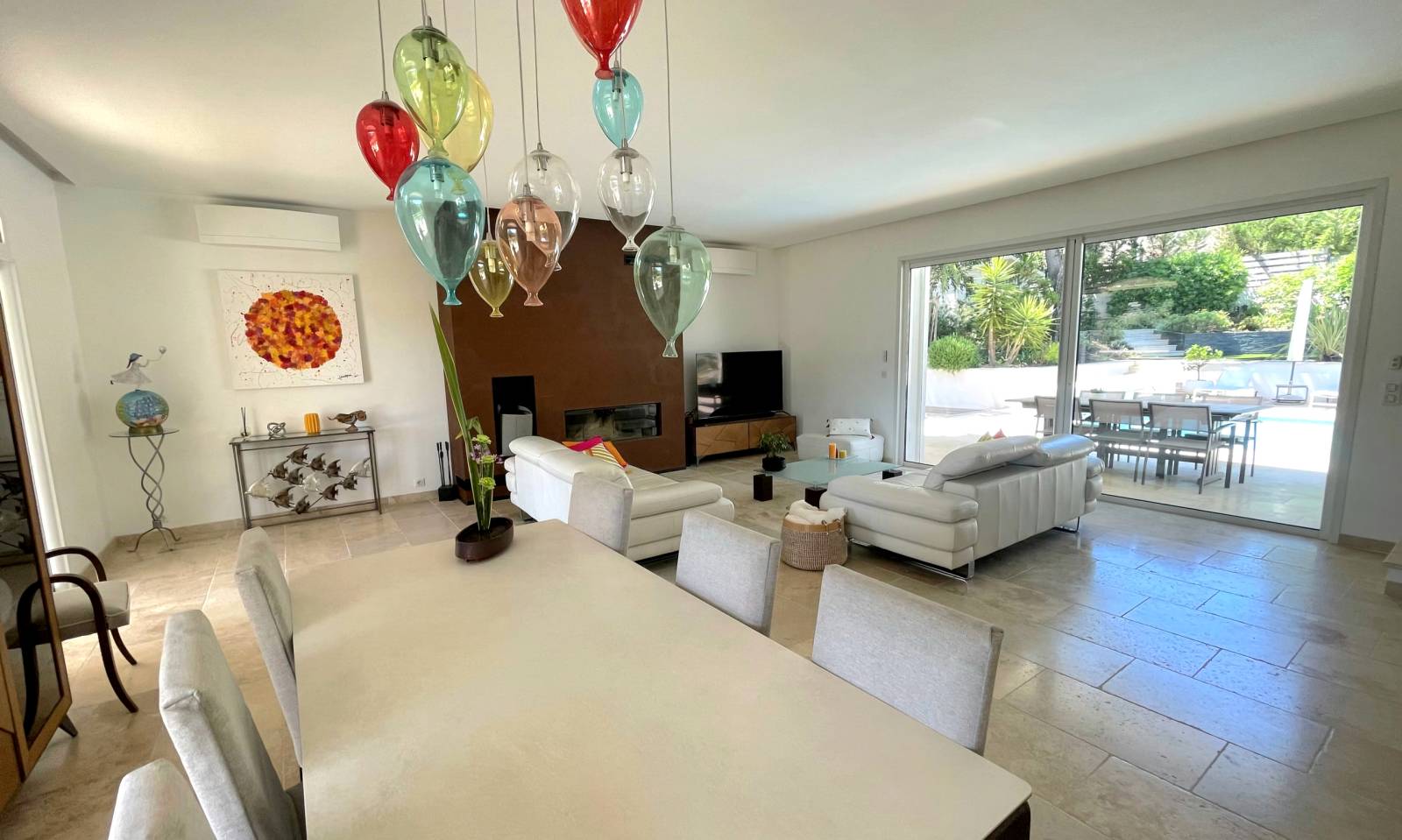 Cette splendide villa des années 70, intégralement rénovée en 2015, se compose de six pièces, incluant quatre chambres, chacune bénéficiant de sa propre salle d'eau et de toilettes privatives. Elle intègre une cuisine de type américain entièrement équipée, un séjour et un salon lumineux s'ouvrant sur un terrain paysager de 1272 mètres carrés. Ce dernier est agrémenté d'une belle piscine, d'un jacuzzi, d'un terrain de pétanque et d'une vaste aire de stationnement capable d'accueillir plusieurs véhicules. Grâce à des travaux de rénovation de qualité, cette villa de plus de 55 ans a remarquablement amélioré son Diagnostic de Performance Énergétique (DPE), atteignant les classes B et A. Cette prouesse permet des économies d'énergie significatives, la consommation du bien étant comparable à celle d'un appartement de 50 mètres carrés doté de trois pièces. Le montant de la taxe foncière s'élève à environ 3300 euros.