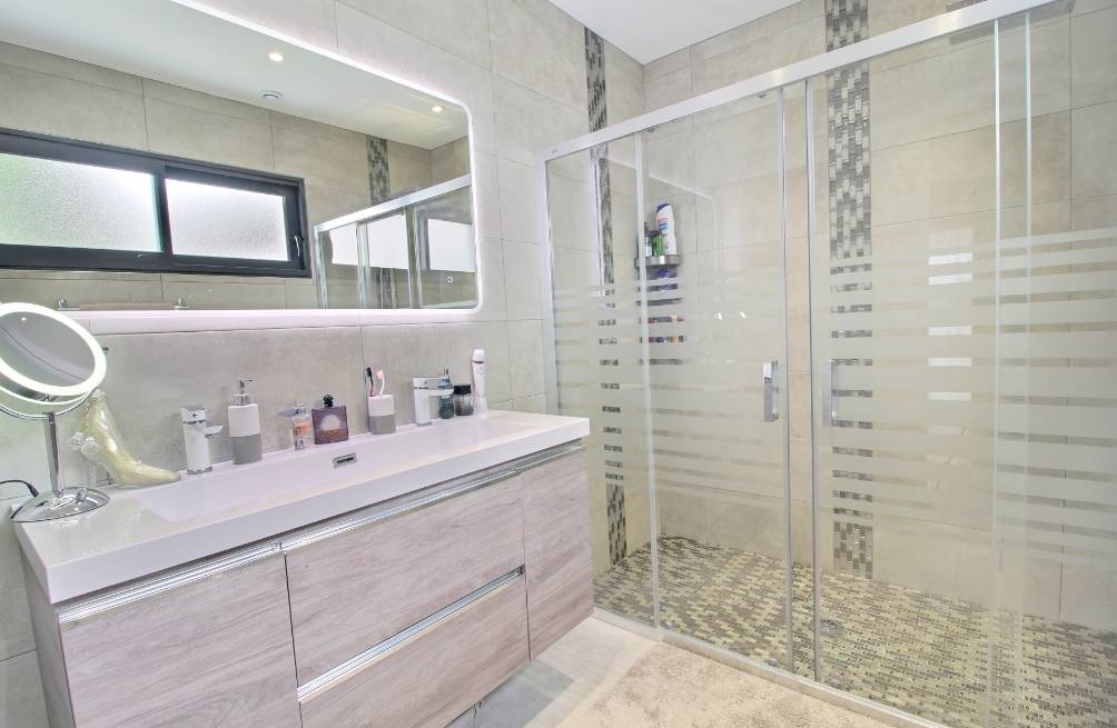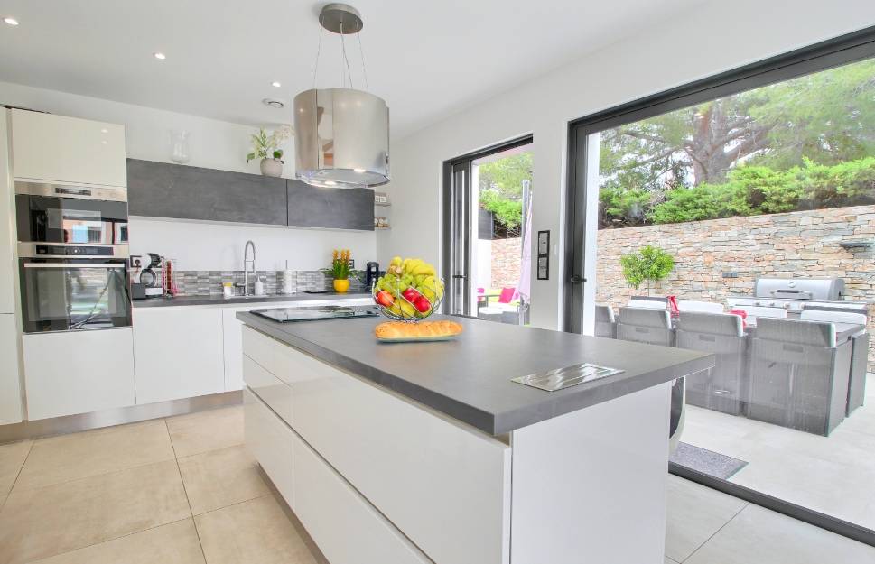 sublime villa a été achevée en 2019, et s'offre des lignes architecturales très séduisantes, évoquant l'élégance et la finesse. Orientée plein Sud, elle s'offre de belles pièces lumineuses, une